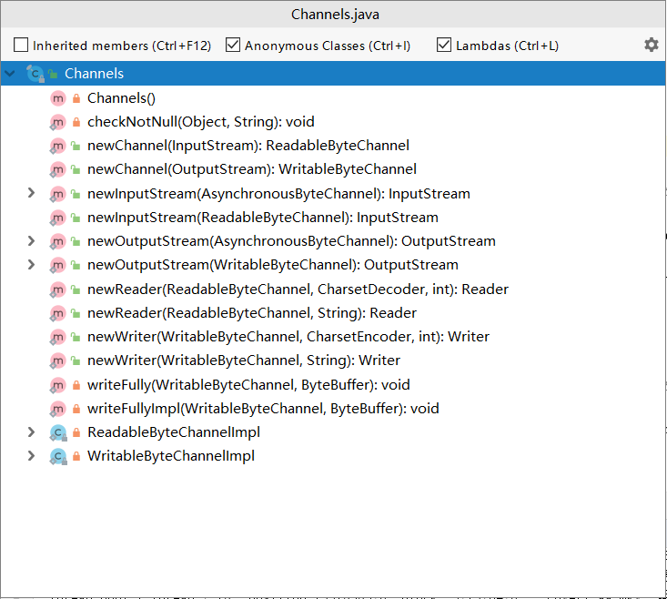 速度的提高来自于所使用的数据集结构更接近于操作系统执行的 I/O 方式:通道和缓冲器,唯一直接与通道交互的缓冲器ByteBuffer。旧的 I/O 库中的FileInputStream,FileOutputStream,RandomAccessFile可以用来生成FileChannel;Reader和Writer不能用于产生通道,但是在java.nio.channels.Channels类中提供了在通道中产生Reader和Writer的方法。