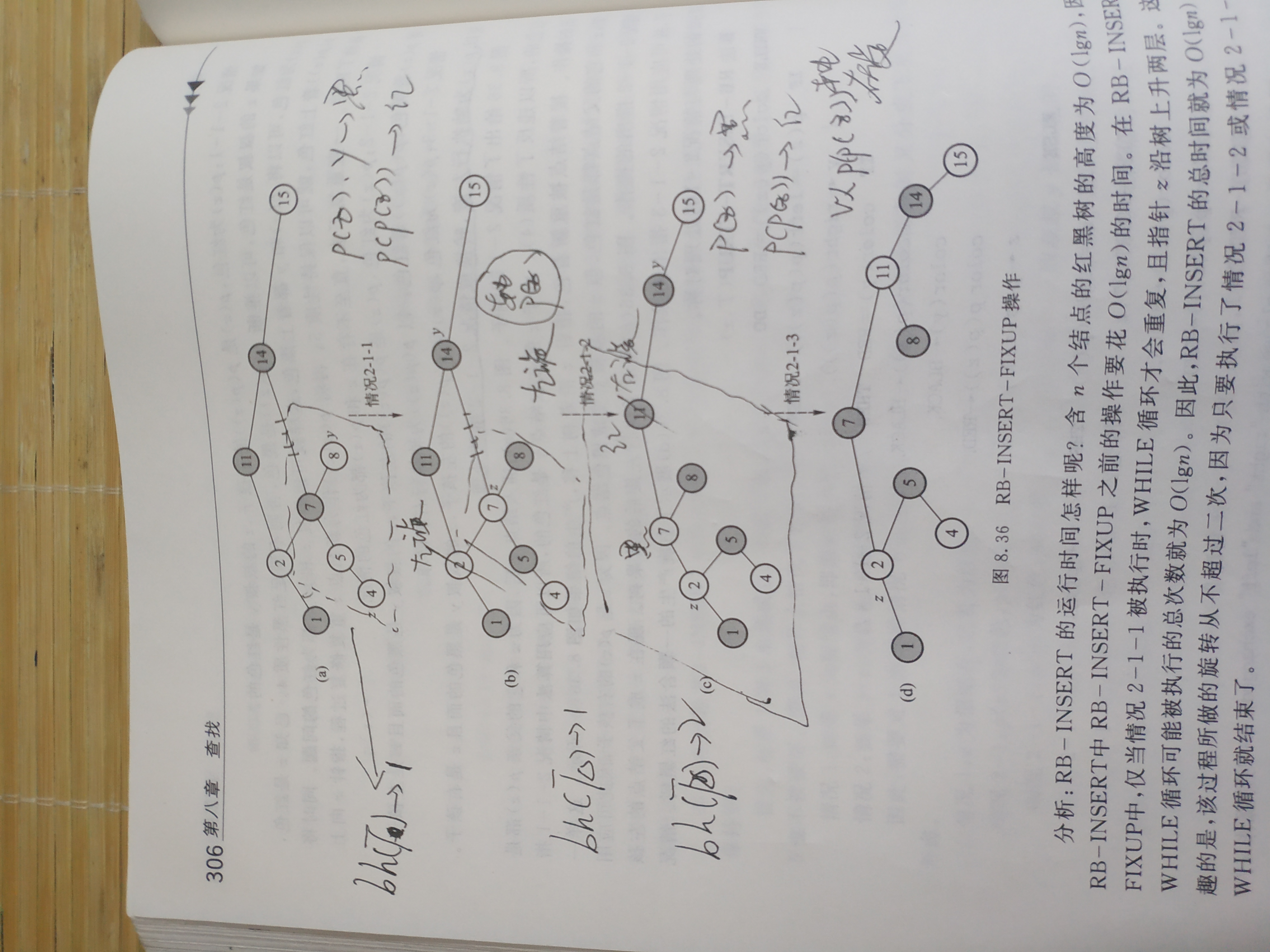情况1. 着色为黑色OK 2.1. 情况2-1. p(Z)为红色,p(Z)是p(p(Z))的左孩子。 2.1.1. 情况2-1-1. p(Z)为红色,p(Z)是p(p(Z))的左孩子,z的叔叔节点y为红色。 p(Z),y 黑 p(p(Z)) 红 2.1.2. 情况2-1-2. p(Z)为红色,p(Z)是p(p(Z))的左孩子,z的叔叔节点y为黑色而且z为左孩子。 p(Z) 黑 p(p(Z)) 红 以p(p(Z))为轴右旋 2.1.3. 情况2-1-3. p(Z)为红色,p(Z)是p(p(Z))的左孩子,z的叔叔节点y为黑色而且z为右孩子。 以p(Z)为轴左旋,转换成情况2-1-2